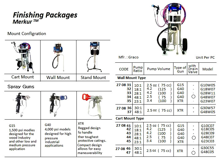 | 中文汉化 | 270844 喷涂设备 GRACO Merkur系列 推车式喷涂机 压力比48:1 75cc容量 型号G48C07 -----描述-----:Merkur泵设计用于提高生产效率,降低成本,减少排放,并提供一致的高质量表面处理。非常适合中小规模作业,并且在现场易于移动。 |